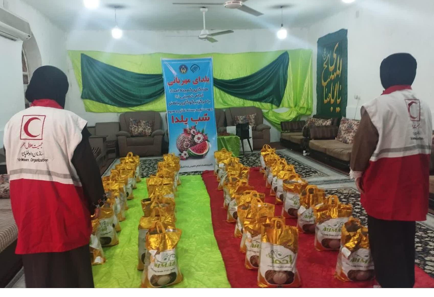 توزیع ۵۰ بسته معیشتی و میوه یلدایی توسط خانه هلال باهنر بین نیازمندان