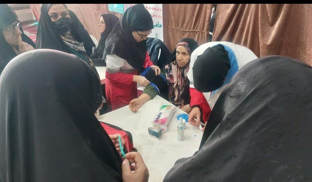 برپایی ایستگاه پایش سلامت و ارائه خدمات تست قند و فشار خون به نمازگزاران در مصلی نماز جمعه اهواز