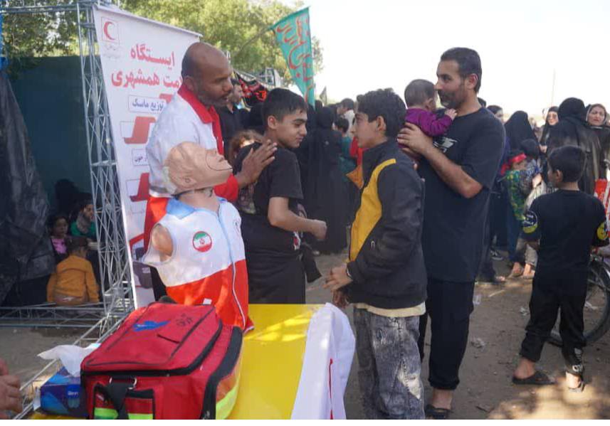 از پوشش امدادی تا برپایی ایستگاه آموزش و سلامت هلالاحمر امیدیه در مراسم شهادت حضرت فاطمه(س)