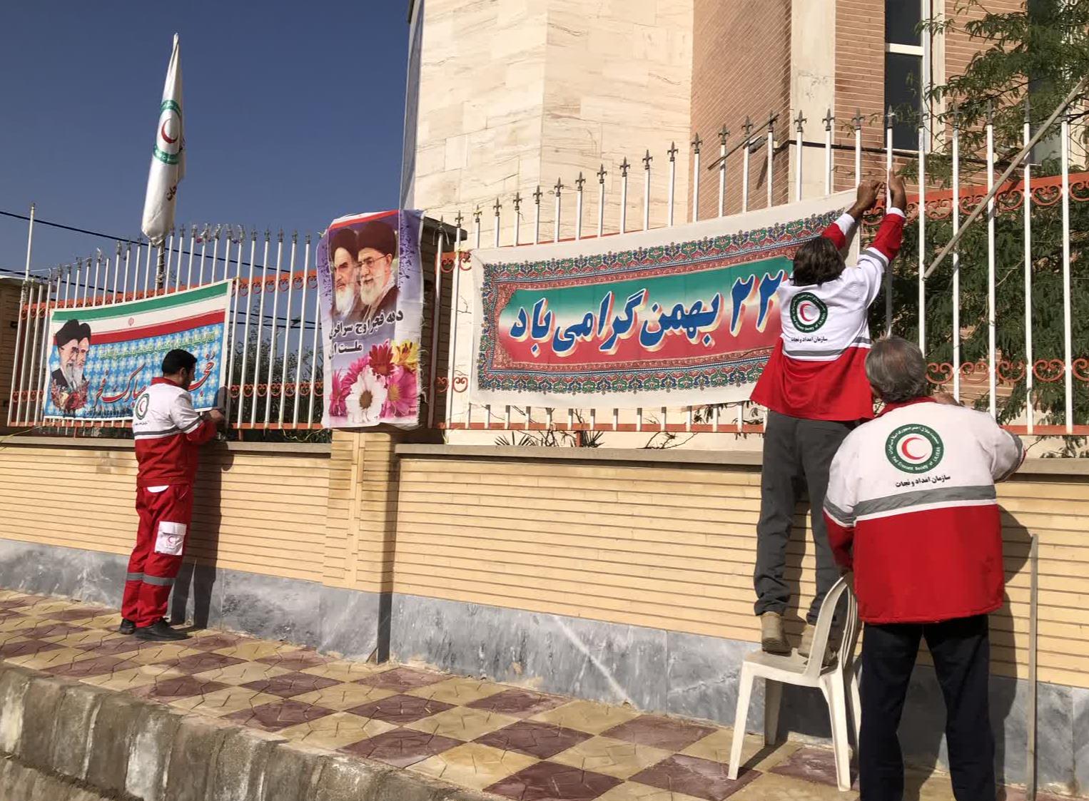 در آستانه جشن پیروزی انقلاب اسلامی هلالاحمر امیدیه آذین بندی شد
