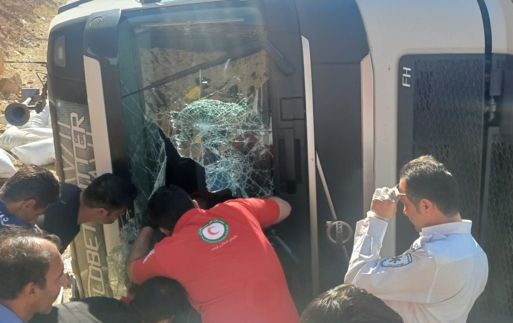 رهاسازی مصدوم حادثه واژگونی تریلر در آزادراه اندیمشک–خرمآباد توسط نجاتگران جمعیت هلال احمر