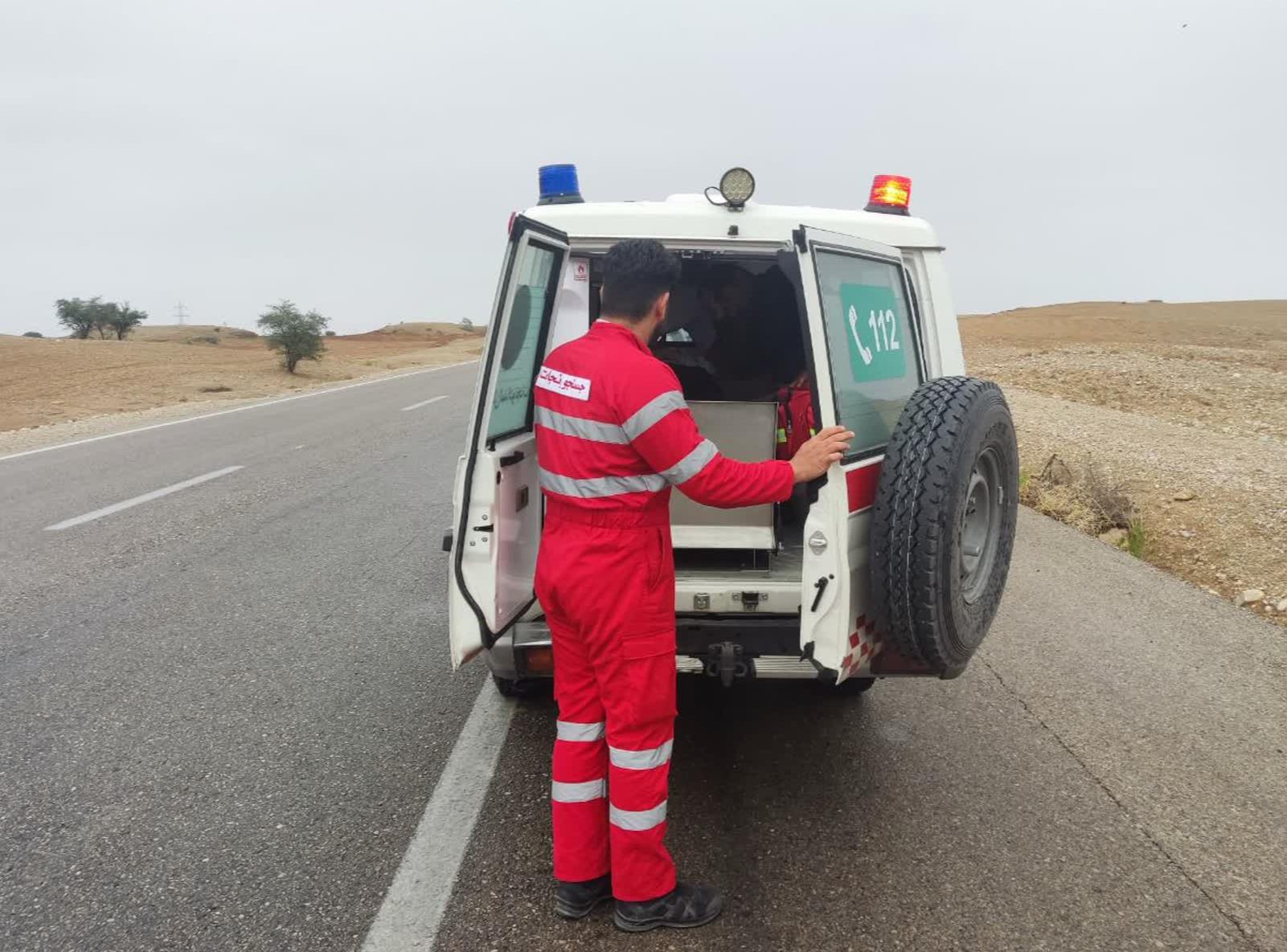 امدادرسانی نجاتگران پایگاه حسینیه به مصدوم حادثه واژگونی موتورسیکلت در محور اندیمشک - خرم آباد