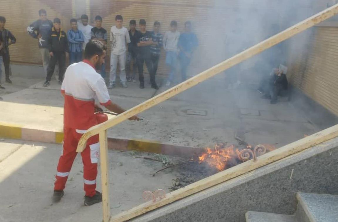 اجرای مانور حمل مصدوم و اطفای حریق در هنرستان خوارزمیباغملک به مناسبت هفته پدافند غیرعامل