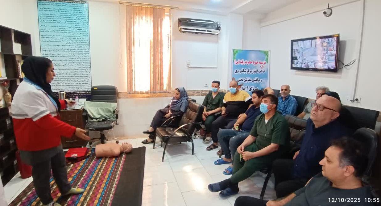 برگزاری دوره آموزش مواجهه با مخاطرات در شرایط بحرانی در مرکز توانبخشی بهزیستی بندرماهشهر با همکاری جمعیت هلالاحمر
