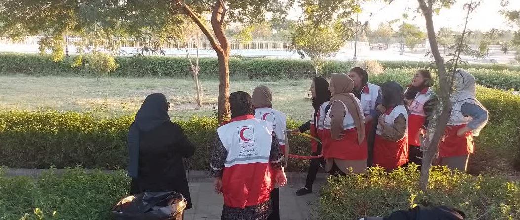 پاکسازی محیطزیست توسط جوانان و داوطلبان جمعیت هلالاحمر شوشتر