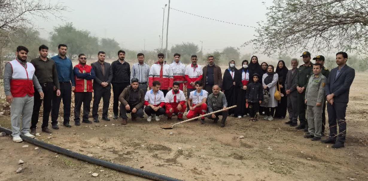 کاشت نهال توسط اعضای جمعیت هلالاحمر گتوند به مناسبت ولادت حضرت علی (ع) و سالروز شهادت سردار دلها حاج قاسم سلیمانی