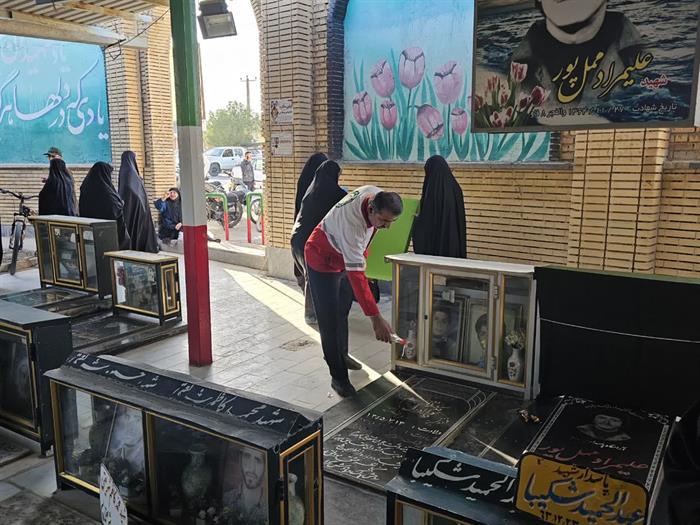 اعضا و پرسنل جمعیت هلالاحمر شهرستان بهبهان به مناسبت هفته دفاع مقدس با حضور در گلزار شهدای گمنام این شهرستان ضمن برگزاری مراسم غبارروبی و عطرافشانی و نثار گل و قرائت فاتحه، یاد و خاطره رشادتها، ایثارگریها و فداکاریهای رزمندگان هشت سال دفاع مقدس را گرامی داشته و با تجدید میثاق، ارادت و پایبندی خود به آرمانهای والای شهیدان را به نمایش گذاشتند.