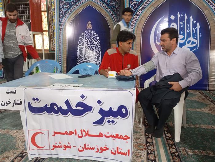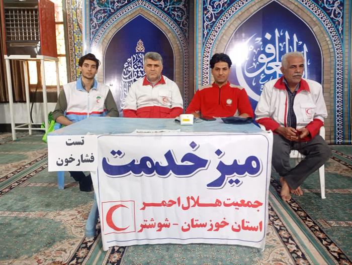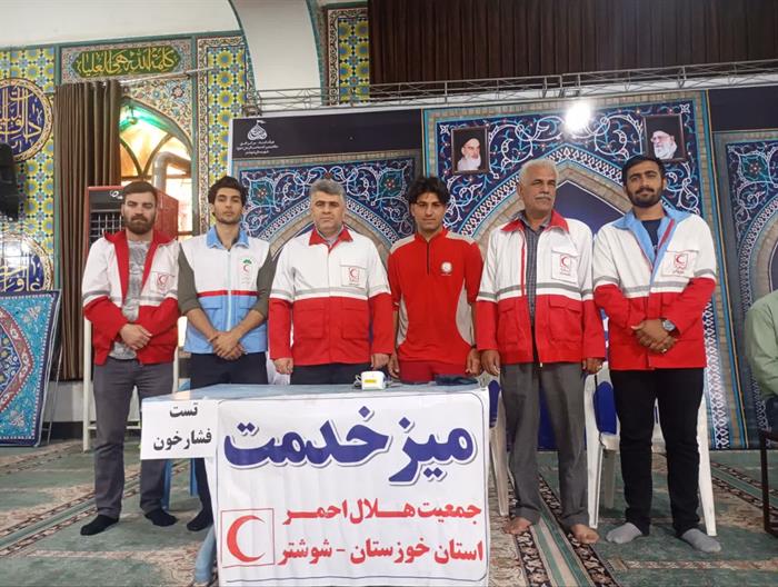 پرسنل و اعضای جمعیت هلالاحمر شهرستان شوشتر به مناسبت هفته دفاع مقدس با برپایی میز خدمت در مصلی نمازجمعه و ارائه خدمات امدادی و آموزشی، از جمله آموزش احیای قلبی-ریوی و تست فشار خون، یاد و خاطره رشادتها، فداکاریها و ایثارگریهای رزمندگان هشت سال دفاع مقدس را گرامی داشته و با ارتقای سطح آگاهی عمومی، روحیه خدمت و همدلی را در جامعه ترویج دادند.