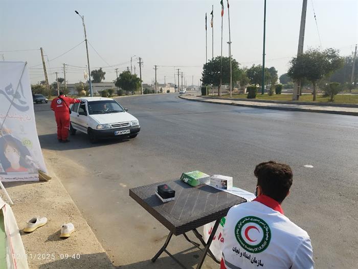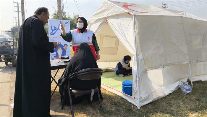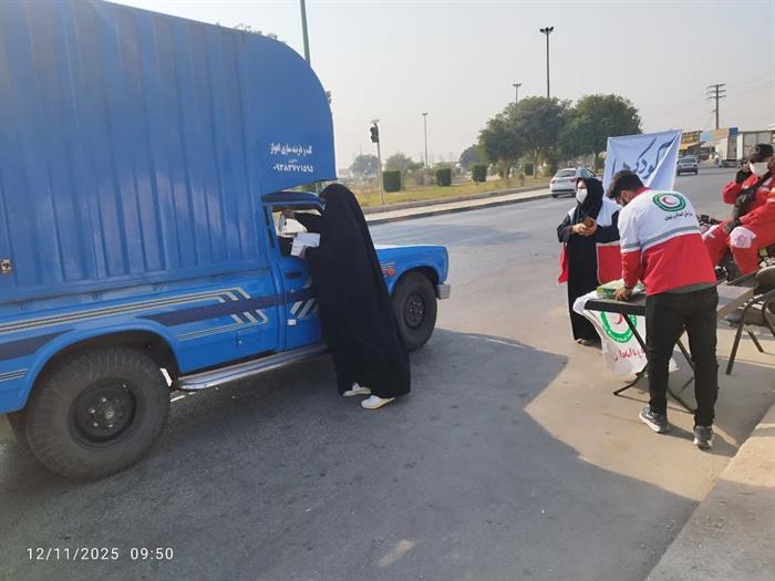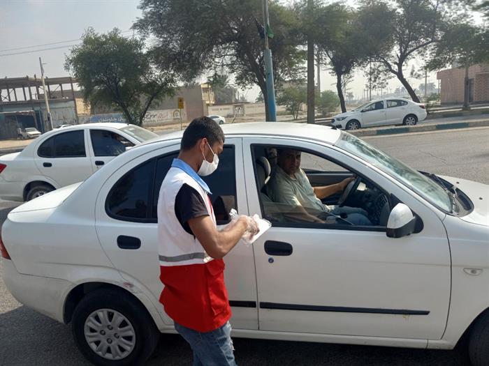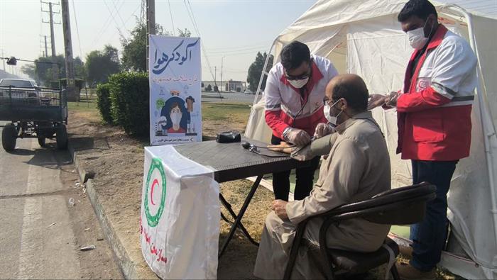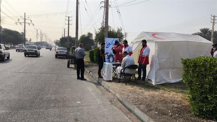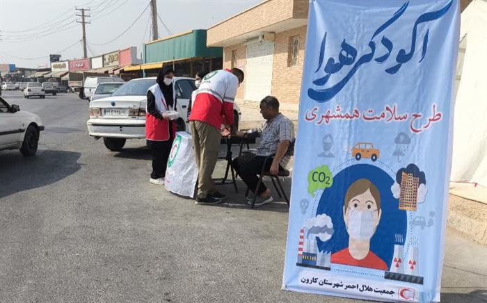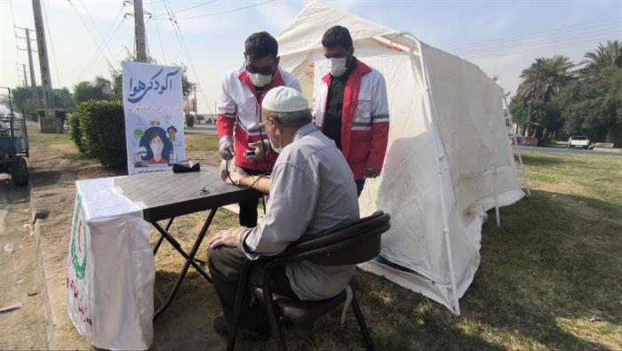 اجرای طرح«سلامت همشهری»درشهرستان کارون با استقرارایستگاه پایش سلامت و مشارکت اعضای داوطلب هلالاحمر در توزیع ماسک و اندازهگیری قندوفشار خون شهروندان