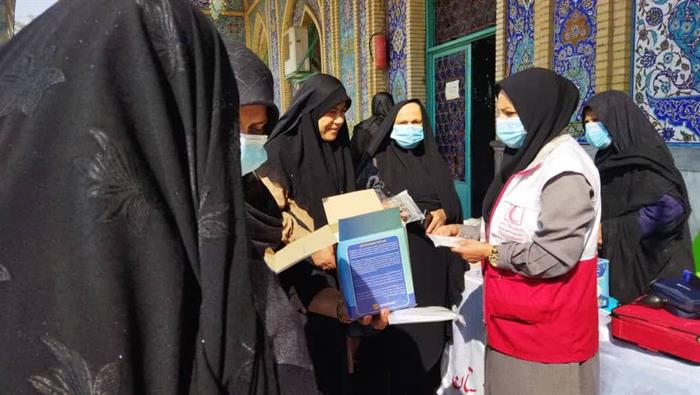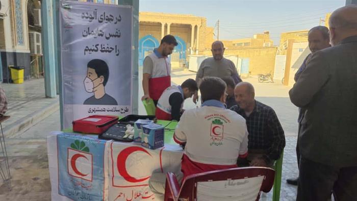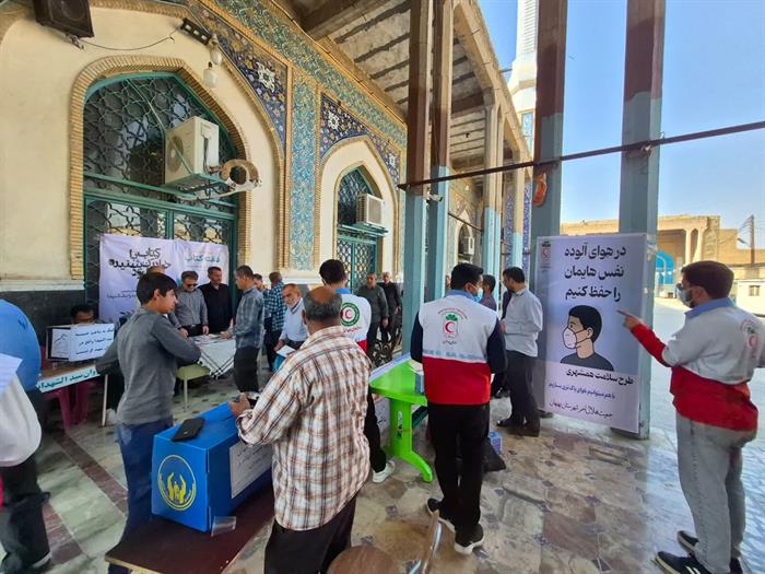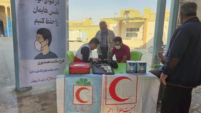 اجرای طرح«سلامت همشهری»درشهرستان بهبهان بامشارکت اعضای داوطلب هلالاحمرواستقرار ایستگاه پایش سلامت بهمنظورسنجش قندوفشارخون وتوزیع ماسک میان شهروندان