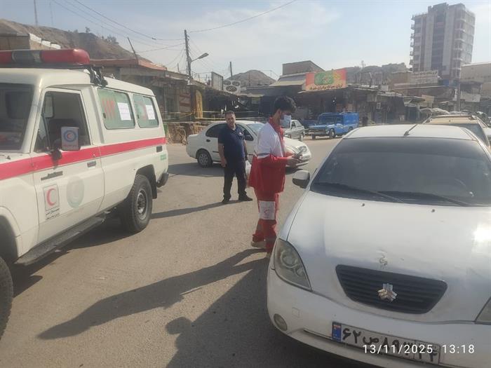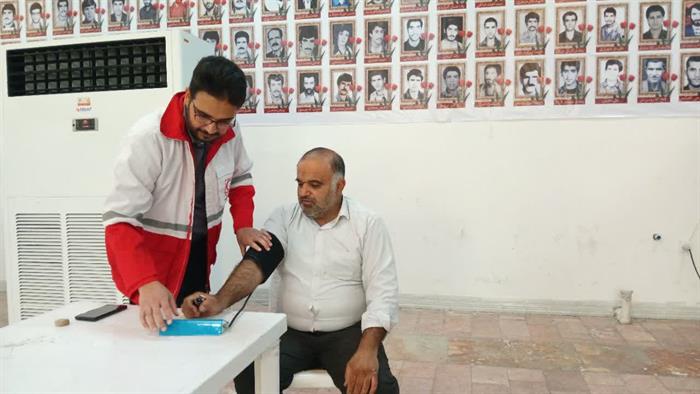 اجرای طرح «سلامت همشهری» با برپایی ایستگاه پایش سلامت، توزیع ماسک و ارائه خدمات پایش قندوفشارخون توسط اعضای داوطلب جمعیت هلالاحمر شهرستان مسجدسلیمان