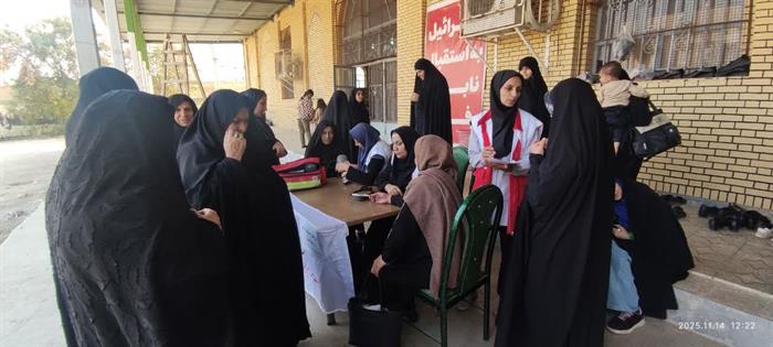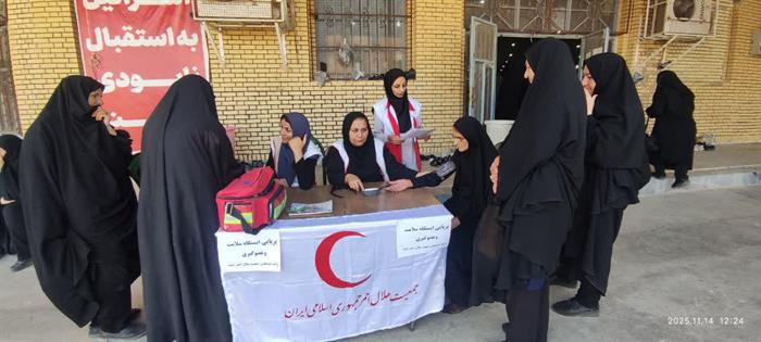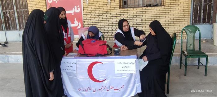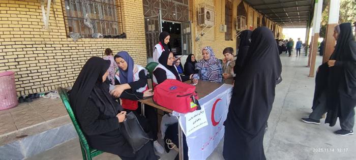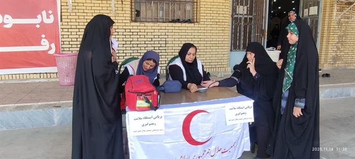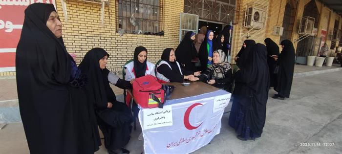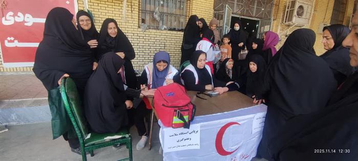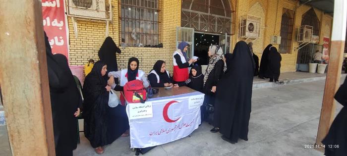 اجرای طرح«سلامت همشهری»در شهرستان ایذه بامشارکت اعضای داوطلب هلالاحمرواستقرارایستگاه پایش سلامت بهمنظورسنجش قندوفشارخون وتوزیع ماسک میان شهروندان
