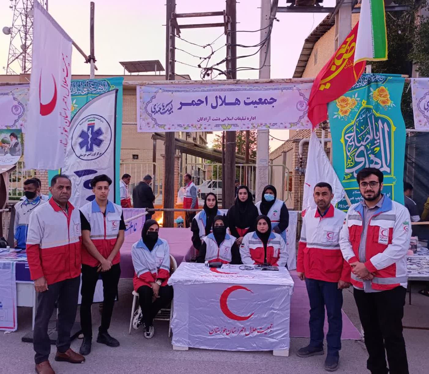 پایش سلامت و برپایی ایستگاه صلواتی جمعیت هلال‌احمر دشت آزادگان به مناسبت نیمه شعبان