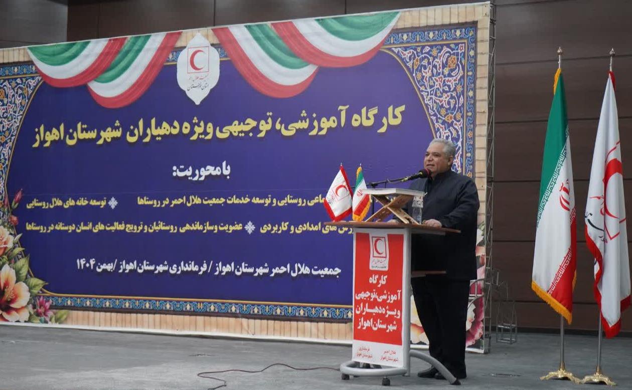 کارگاه آموزشی و توجیهی ویژه دهیاران شهرستان اهواز با محوریت ارتقای تابآوری اجتماعی، توسعه خدمات جمعیت هلالاحمر در روستاها و تقویت فعالیتهای انساندوستانه و با هدف توسعه خانههای هلال روستایی، گسترش آموزشهای امدادی و کاربردی، عضویت و سازماندهی روستائیان و ترویج فعالیتهای داوطلبانه، بهمنظور فراهم کردن فرصتی عملی برای توانمندسازی دهیاران و همکاران محلی، با حضور، مدیرعامل جمعیت هلالاحمر استان، فرماندار اهواز، بخشداران سه بخش مرکزی، غیزانیه و اسماعیلیه و همچنین ۱۱۰ دهیار برگزار شد.