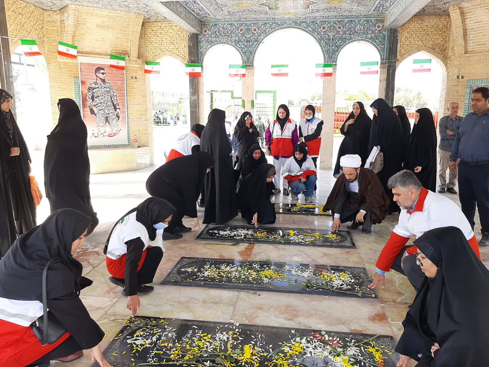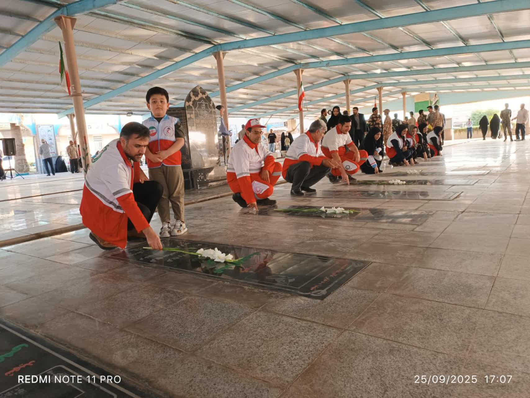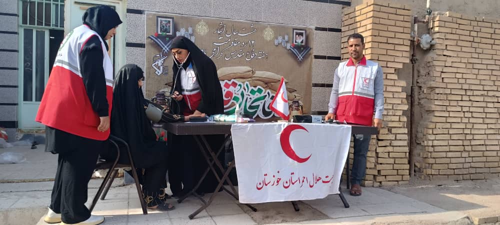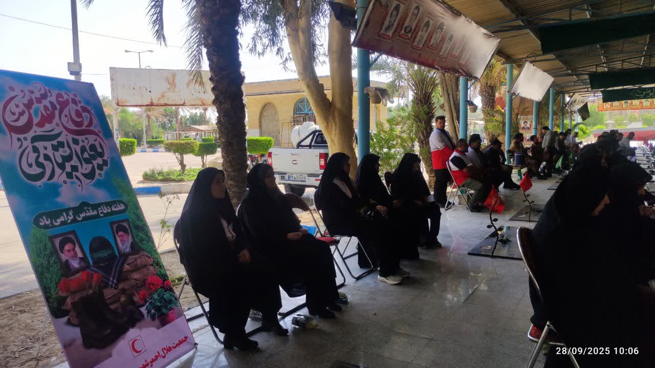 پرسنل و اعضای جمعیت هلالاحمر شهرستان شوشتر به مناسبت هفته دفاع مقدس با برپایی میز خدمت در مصلی نمازجمعه و ارائه خدمات امدادی و آموزشی، از جمله آموزش احیای قلبی-ریوی و تست فشار خون، یاد و خاطره رشادتها، فداکاریها و ایثارگریهای رزمندگان هشت سال دفاع مقدس را گرامی داشته و با ارتقای سطح آگاهی عمومی، روحیه خدمت و همدلی را در جامعه ترویج دادند.