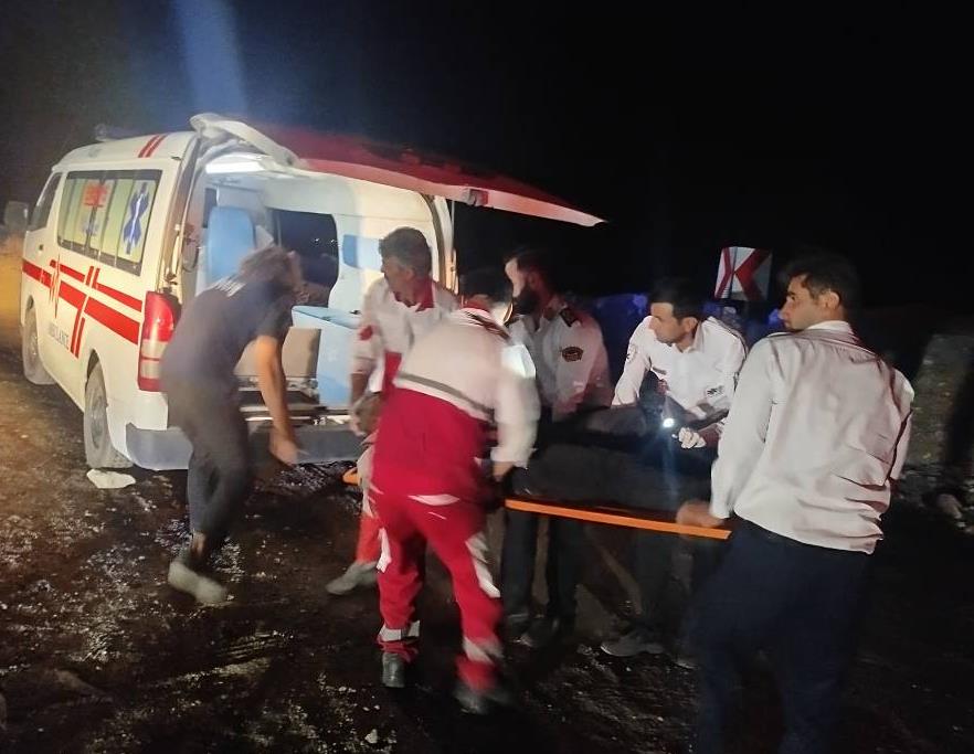 امدادرسانی به دو مصدوم حادثه برخورد تیبا و پیکان وانت در محور هفتکل – مسجدسلیمان