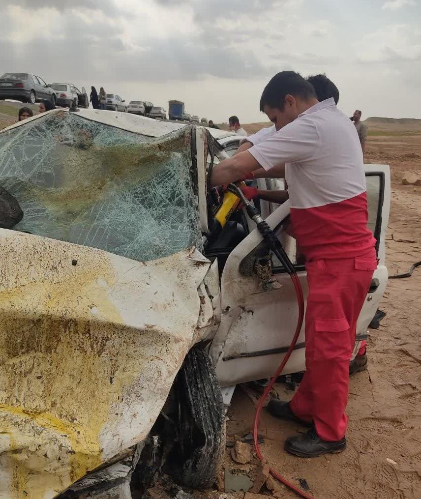 واژگونی پژو ۴۰۵ در محور هفتکل–باغملک؛ رهاسازی یک مصدوم توسط نجاتگران جمعیت هلالاحمر