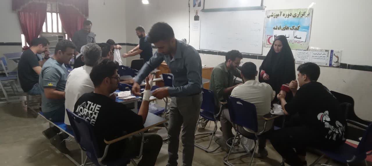 ممبینی در پایان بیان گفت : در این دورهها، مباحث کاربردی نظیر؛ ارزیابی مصدوم ، کنترل علائم حیاتی، احیای قلبی و ریوی، کنترل خونریزی، پانسمان و بانداژ، اطفای حریق،اسکان اضطراری،پناهگیری و خروج ایمن،آشنایی با هلال احمر و کار گروهی و رهبری تیم به شرکتکنندگان آموزش داده شد.