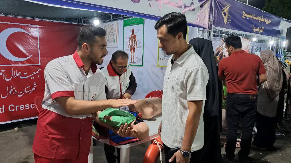 برپایی غرفه آموزش و پایش سلامت جمعیت هلال‌احمر دزفول در نمایشگاه هفته دفاع مقدس