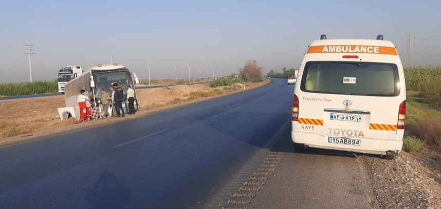به گزارش روابطعمومی جمعیت هلالاحمر خوزستان؛ معاون امداد و نجات جمعیت هلالاحمر استان با اعلام این خبر گفت: ساعت ۰۶:۵۷ صبح روز سهشنبه ۱۵ مهرماه ۱۴۰۴، گزارش انحراف یک دستگاه اتوبوس در کیلومتر ۵۲ محور اهواز – شوش به مرکز کنترل و هماهنگی عملیات امداد و نجات استان اعلام شد و بلافاصله نجاتگران پایگاه امداد و نجات شهید علیچعب با یک دستگاه آمبولانس به محل حادثه اعزام شدند.