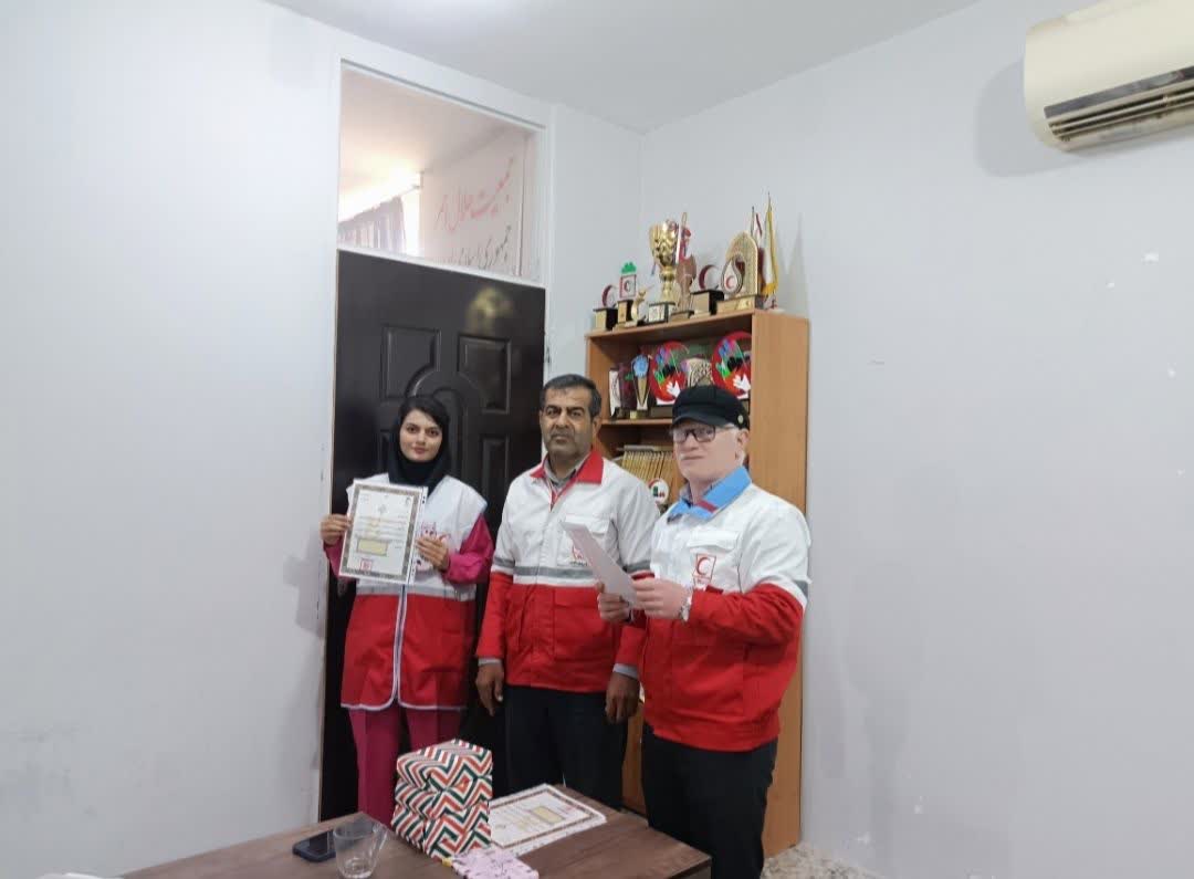 صدیقه عزیزی منفرد | به گزارش روابط عمومی جمعیت هلالاحمر استان خوزستان؛ رئیس جمعیت هلالاحمر شهرستان ایذه با اشاره به برگزاری مراسم تجلیل از تیمهای خواهران و برادران شرکتکننده در مسابقات استانی «رفاقت مهر» گفت: این برنامه با حضور مسئولان جمعیت هلالاحمر شهرستان و جمعی از مربیان، داوران و اعضای شرکتکننده در مسابقات برگزار شد.