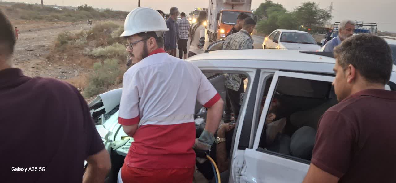 حادثه برخورد سه خودرو سواری در محور اهواز–شوش با یک فوتی و ۴ مصدوم؛رهاسازی و امدادرسانی توسط نجاتگران جمعیت هلال‌احمر اهواز