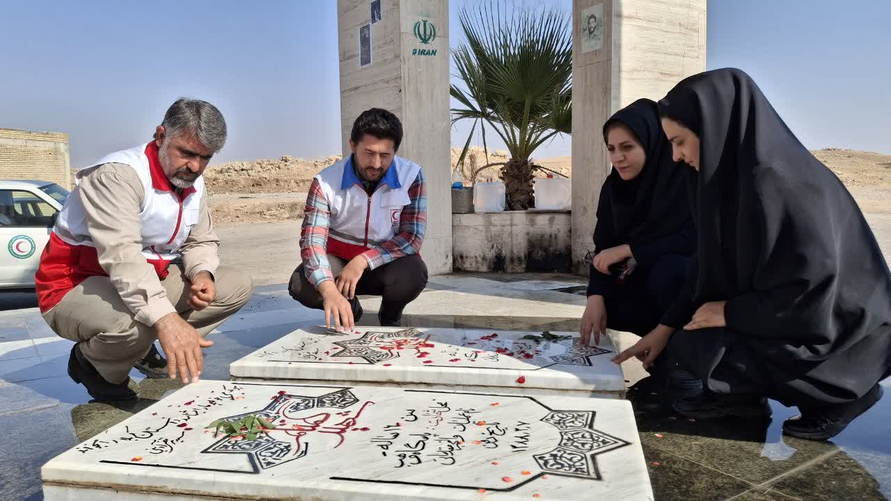غبارروبی و عطرافشانی گلزار شهدا به مناسبت هفتادوهشتمین سالگرد تأسیس سازمان جوانان هلال‌احمر در لالی