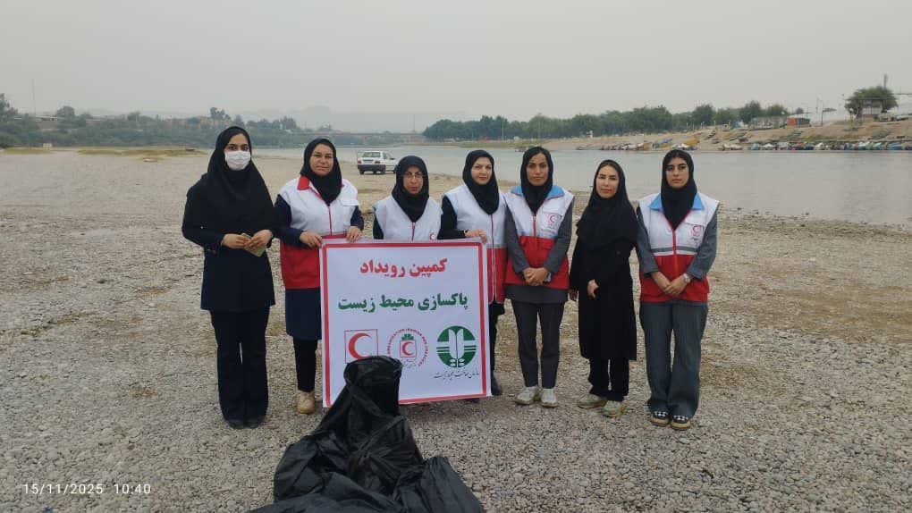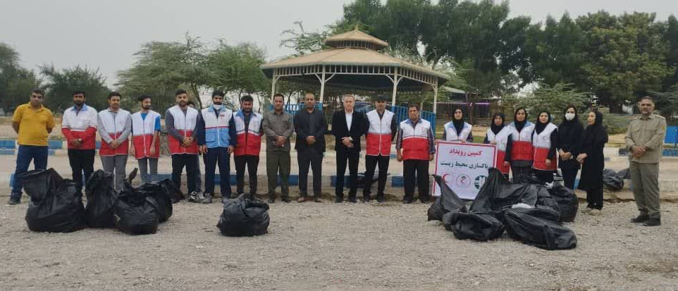 پاکسازی محیط‌زیست توسط جوانان و داوطلبان جمعیت هلال‌احمر شوشتر