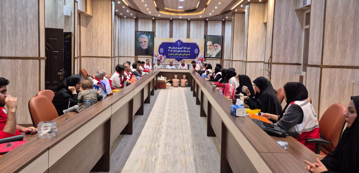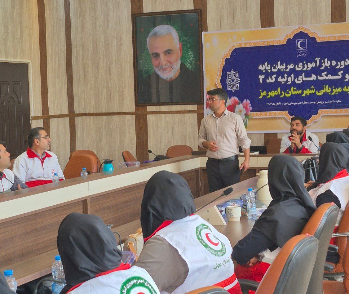 نخستین دوره منطقه‌ای بازآموزی مربیان پایه و کمک‌های اولیه جمعیت هلال احمر استان خوزستان در رامهرمز برگزار شد