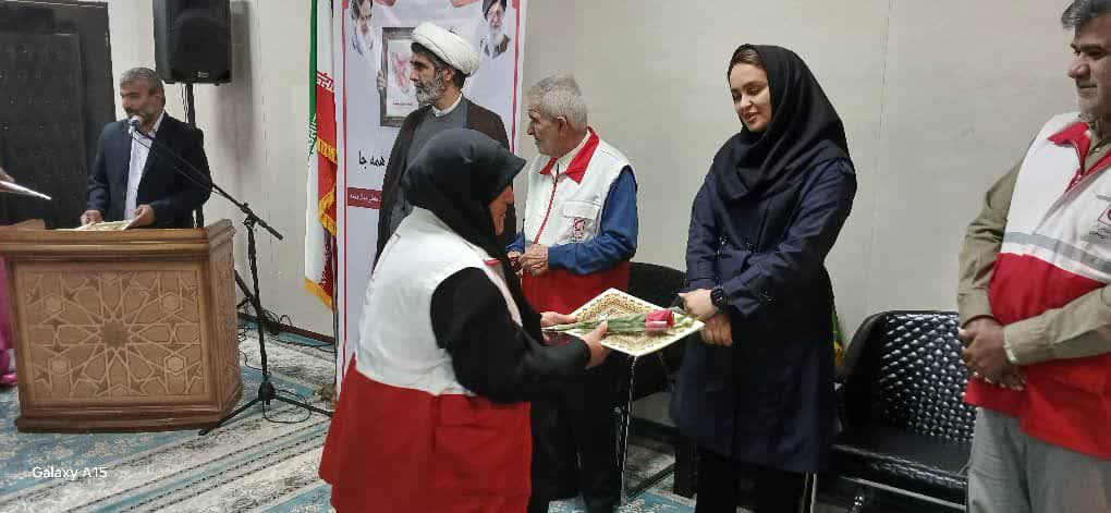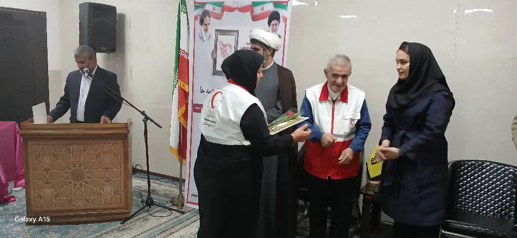همچنین از خانواده مرحومه کبری قاسمی، از داوطلبان نیکنام جمعیت هلالاحمر، با اهدای لوح تقدیر، تندیس یادبود و شاخه گل، تجلیل و قدردانی شد.