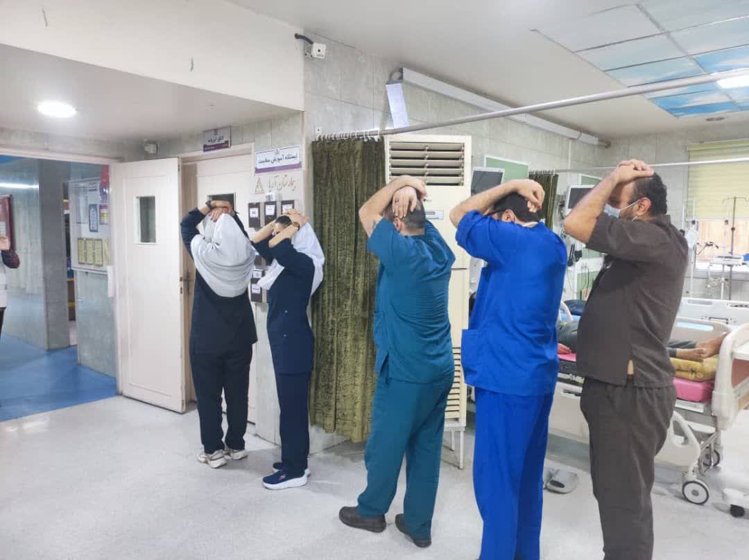 این مانور با همکاری جمعیت هلال احمر اهواز و مدیریت بیمارستان آریا برگزار و با استقبال کارکنان و نیروهای درمانی همراه شد.