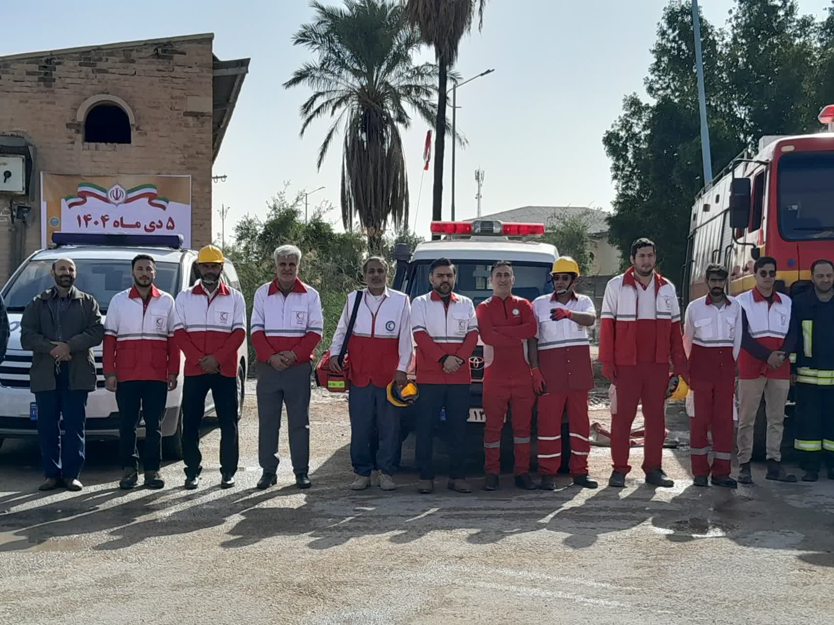 اجرای مانور امداد و نجات در امیدیه به مناسبت هفته ایمنی در برابر زلزله و کاهش اثرات بلایای طبیعی