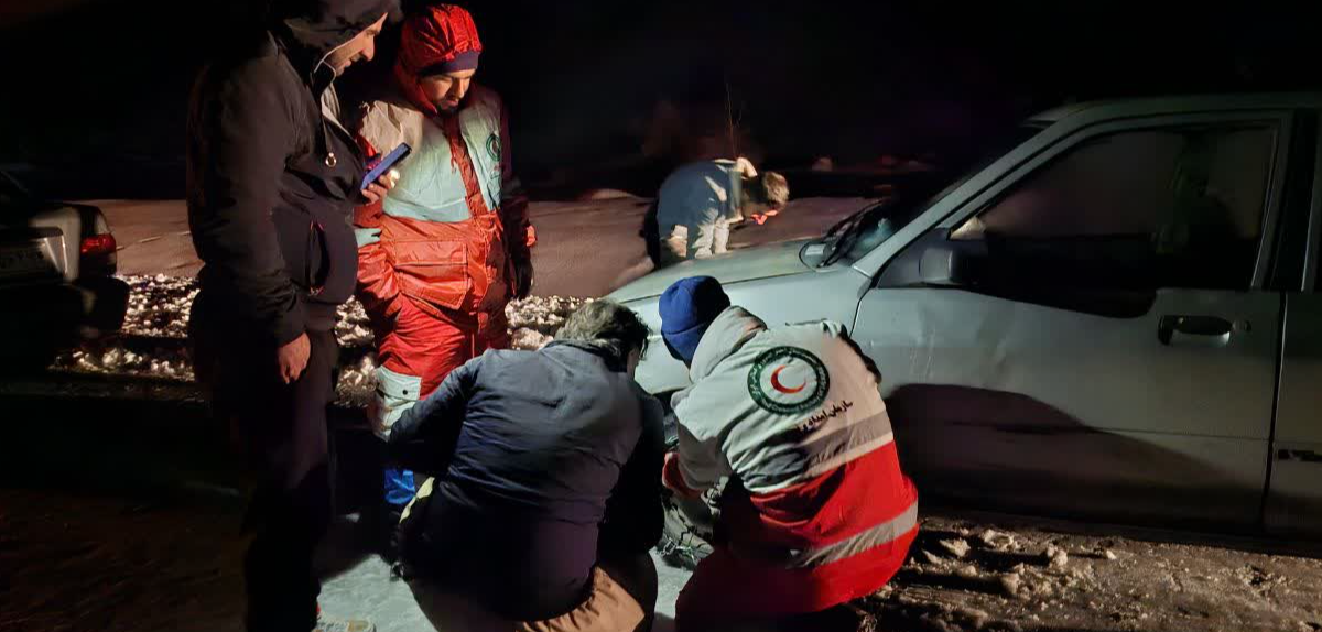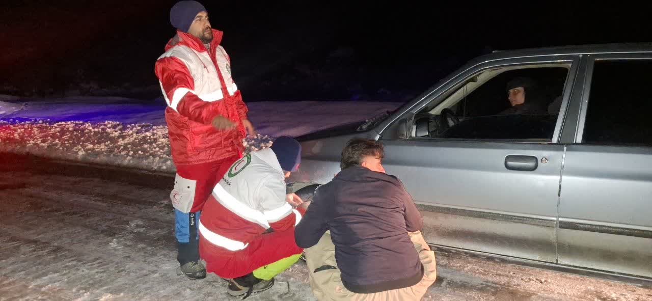 امدادرسانی به ۵۰ خودرو گرفتار در کولاک و برف تاراز توسط نجاتگران جمعیت هلال‌احمر اندیکا