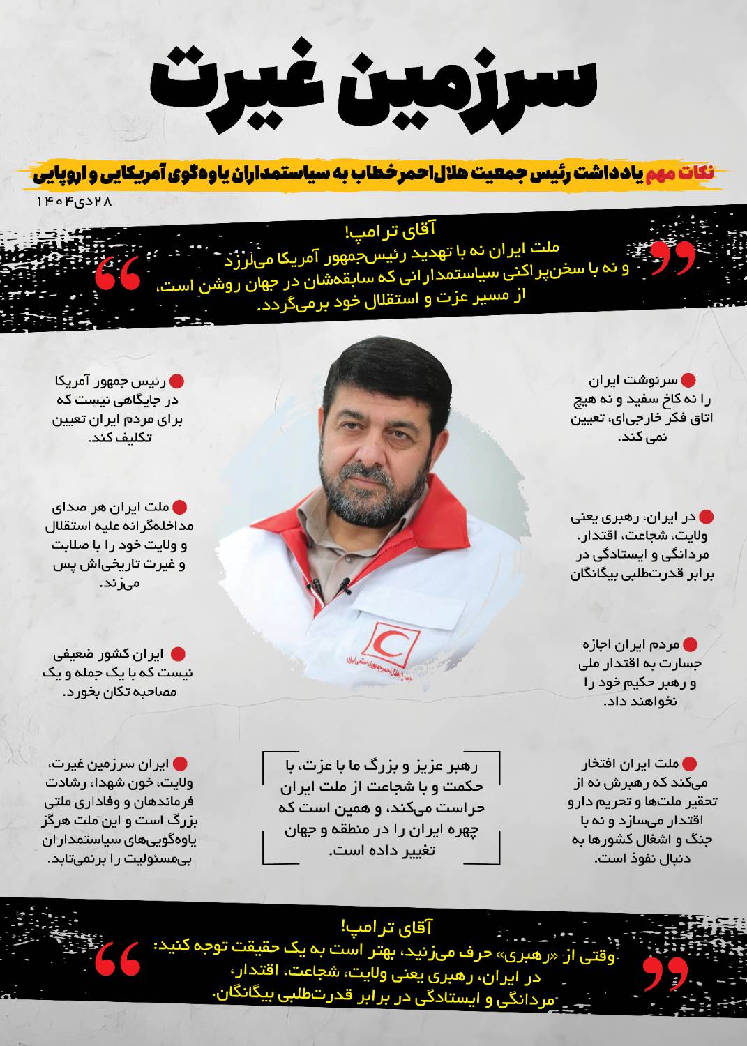نماینده مردم خرمشهر و مینوشهر در مجلس شورای اسلامی، نیز در نشست شورای معاملات جمعیت هلال‌احمر استان، با تأکید بر اهمیت فعالیت‌های جمعیت هلال‌احمر خرمشهر پس از پیروزی انقلاب اسلامی، این نهاد را یکی از سرمایه‌های مهم اجتماعی و امدادی شهرستان دانست که همواره در ارائه خدمات به مردم و تقویت انسجام اجتماعی نقش‌آفرین بوده است.