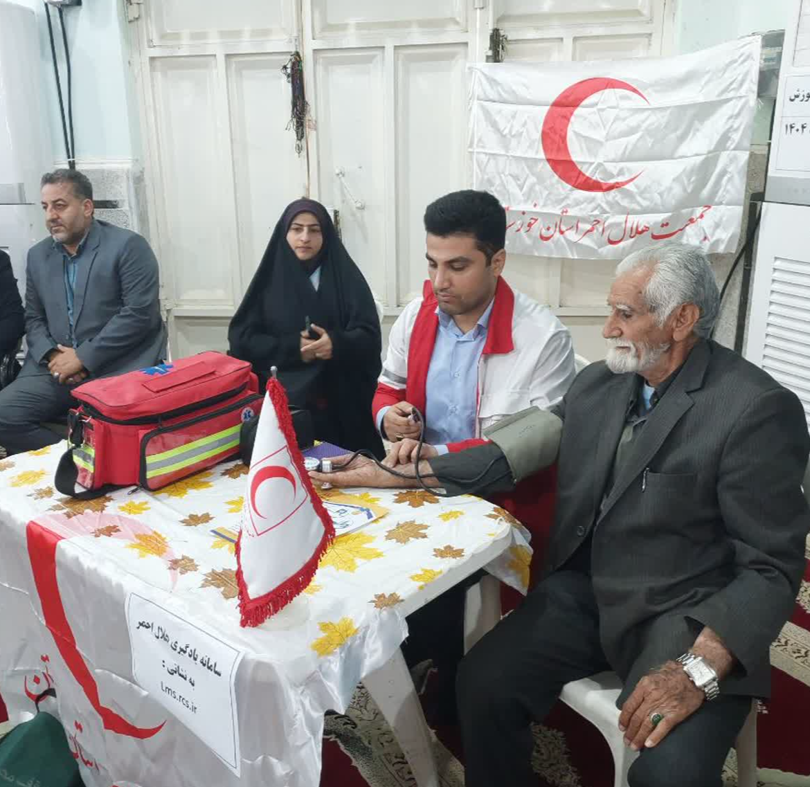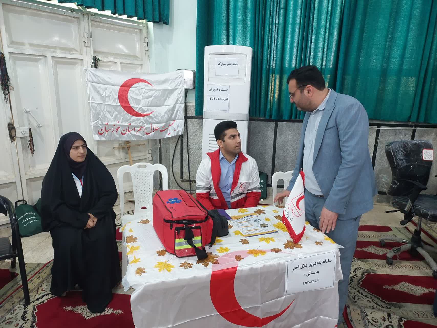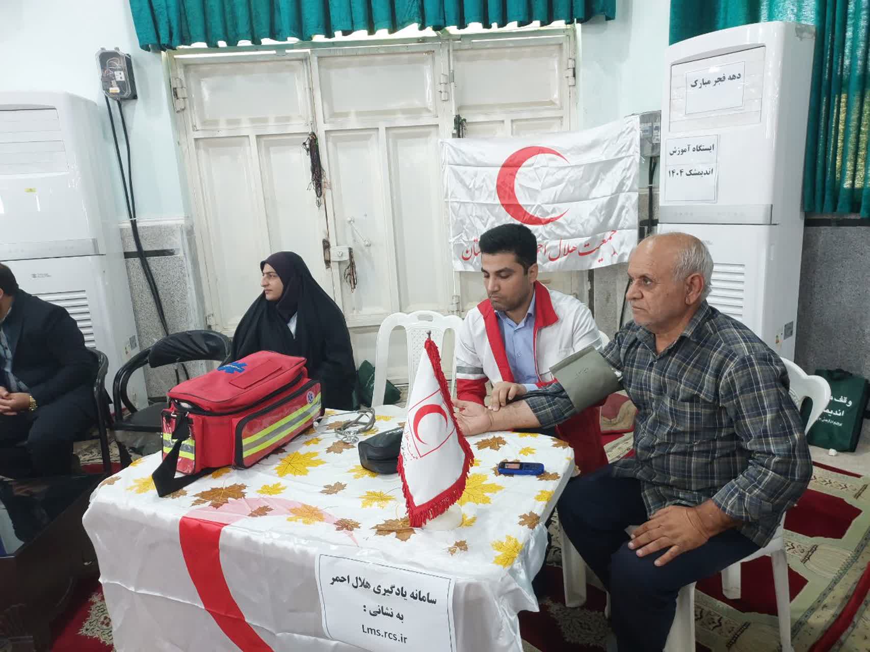 برپایی میز خدمت جمعیت هلال‌احمر اندیمشک و ارائه خدمات سلامت‌محور به نمازگزاران به مناسبت دهه مبارک فجر