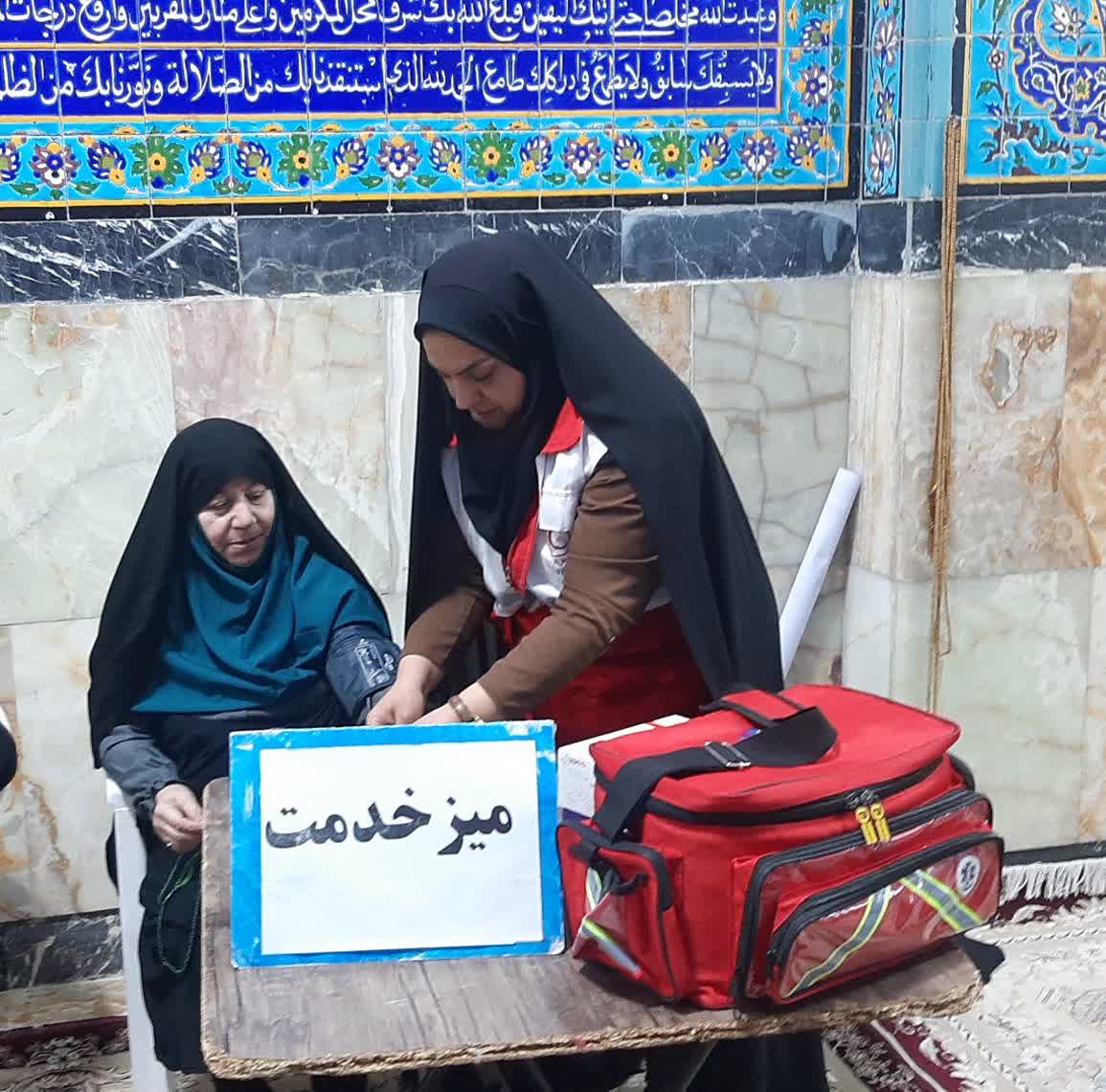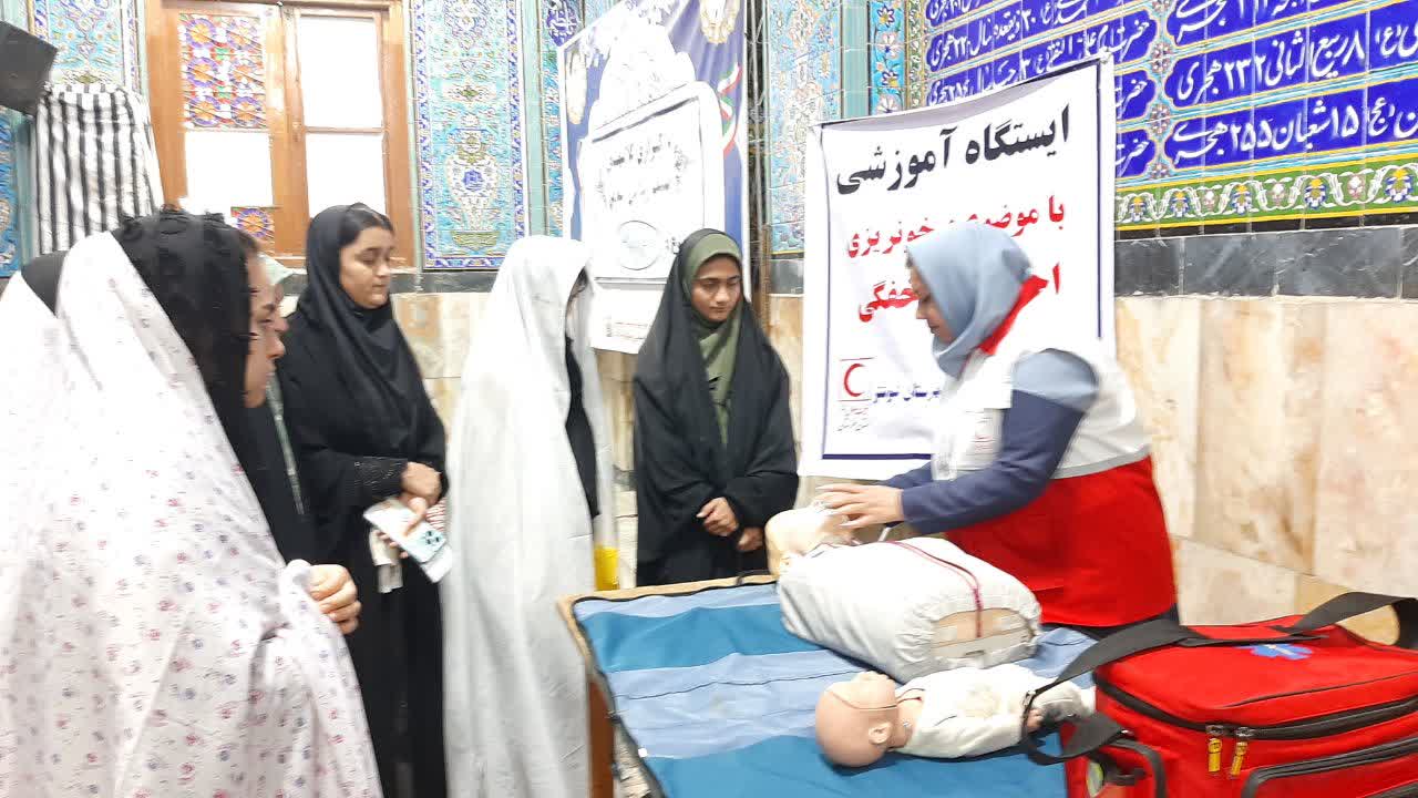 برپایی میز خدمت و ایستگاه آموزش‌های امدادی جمعیت هلال‌احمر شوشتر در مصلی نماز جمعه