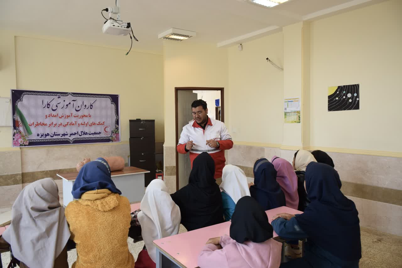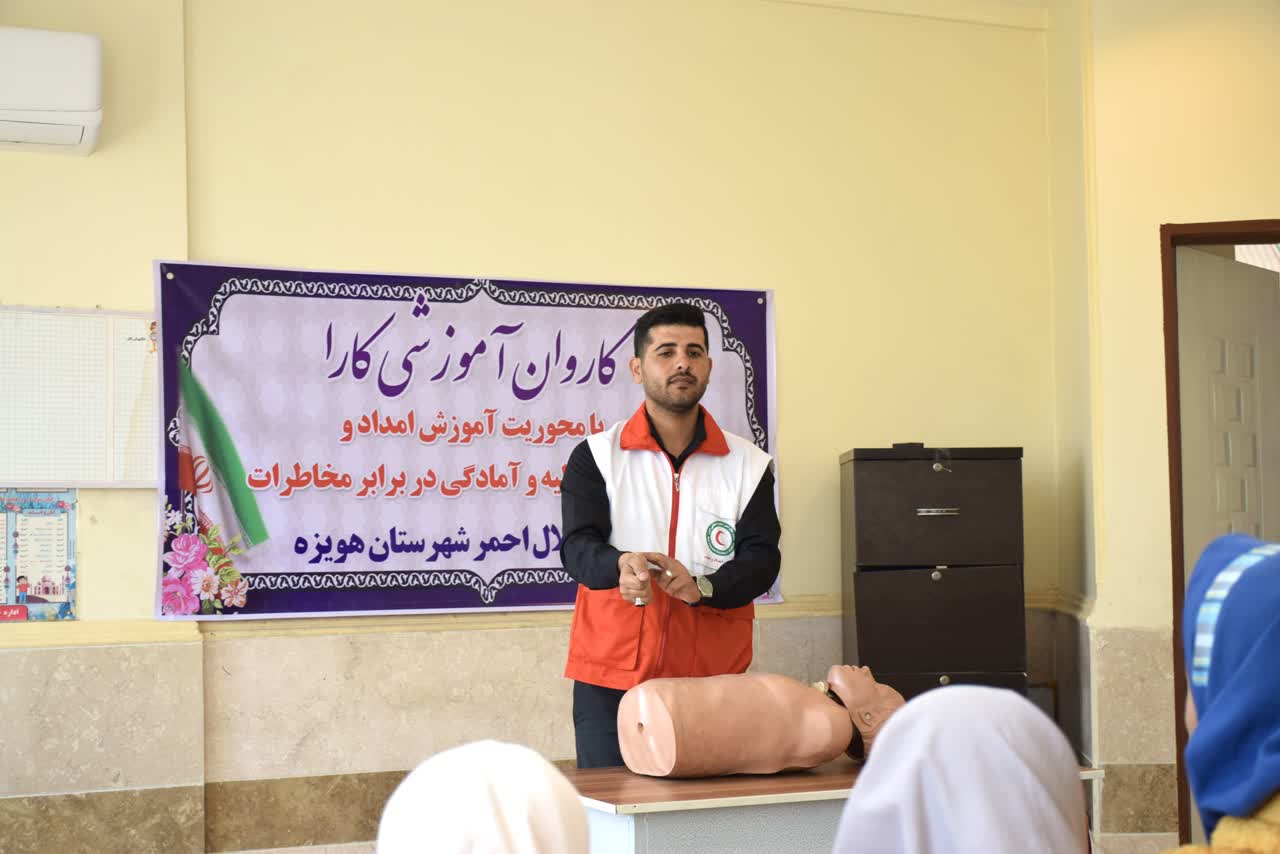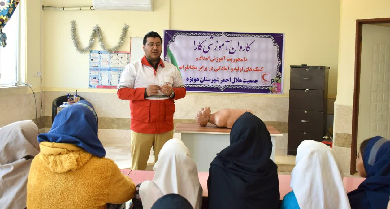 مصطفی حویزاوی | به گزارش روابط عمومی جمعیت هلالاحمر استان خوزستان؛ مسئول دفتر نمایندگی جمعیت هلالاحمر شهرستان هویزه با اشاره به اجرای طرح آموزشی «کارا» برای ارتقای آگاهی و توانمندی دانشآموزان اظهار کرد: این طرح، همزمان با ایام دهه مبارک فجر انقلاب اسلامیبرگزار شد و طی آن کارگاههای تخصصی و عملیاتی برگزار گردید که مفاهیم پایهای امداد و کمکهای اولیه، نحوه مواجهه با آسیبهای فیزیکی، سوختگی، شکستگی و سایر شرایط اضطراری بهصورت کاربردی به دانشآموزان آموزش داده شد.