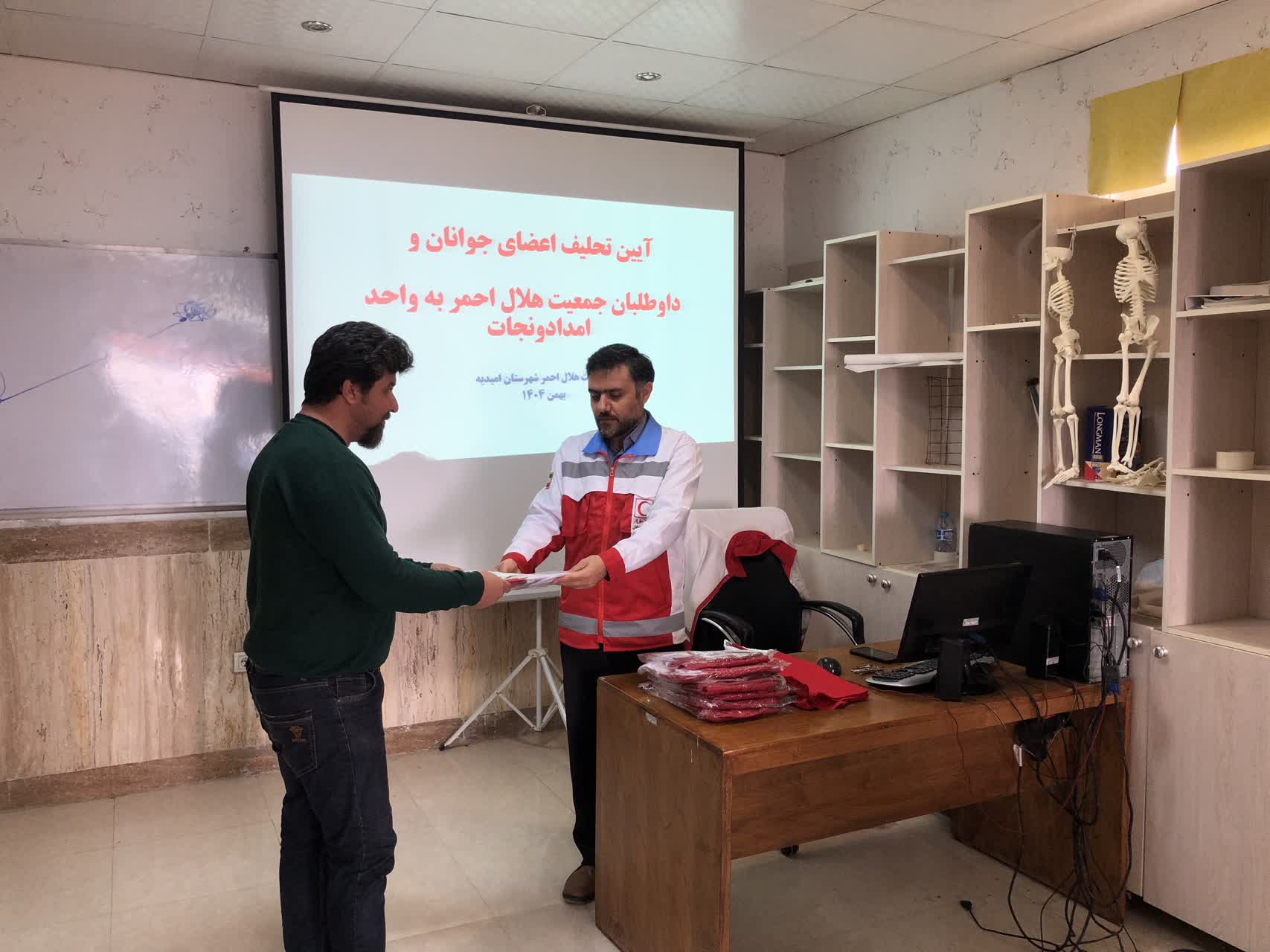 آیین تحلیف اعضای جوانان و داوطلبان جمعیت هلال‌احمر امیدیه به واحد امداد و نجات برگزار شد