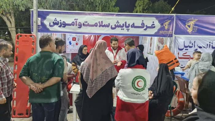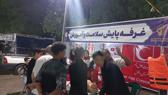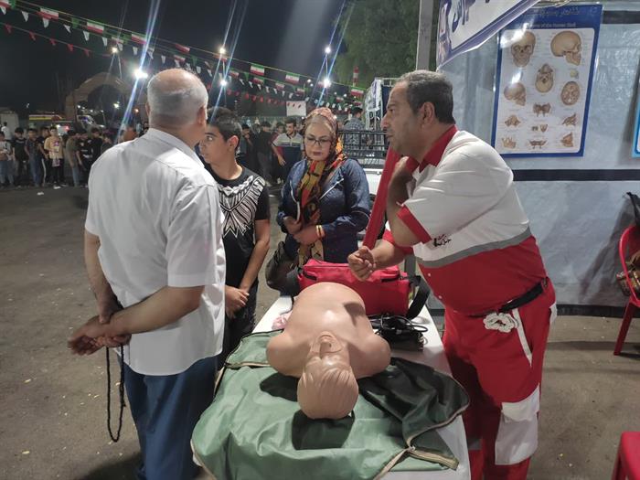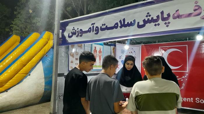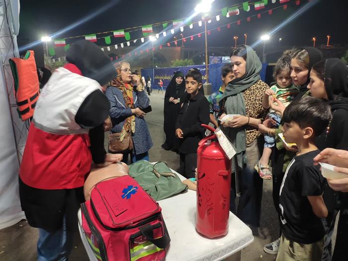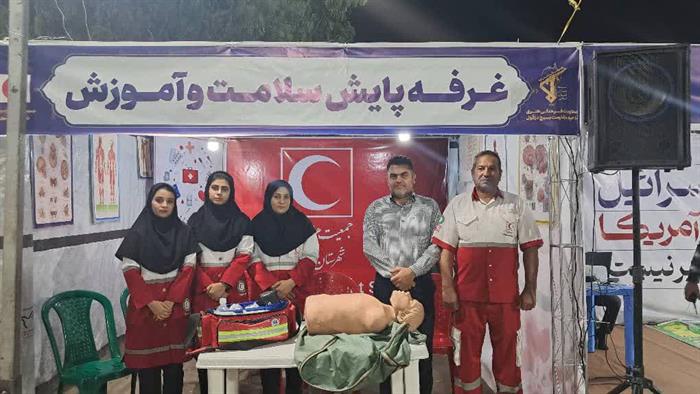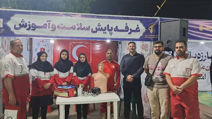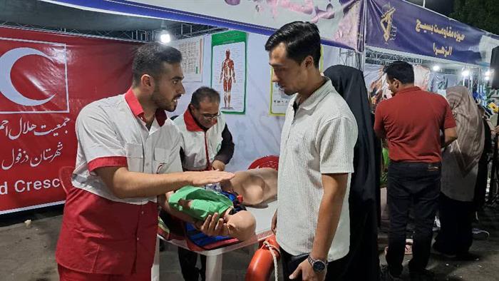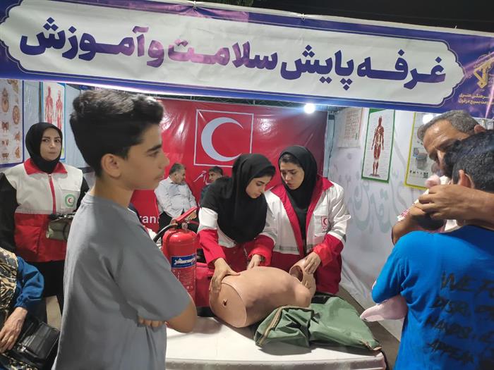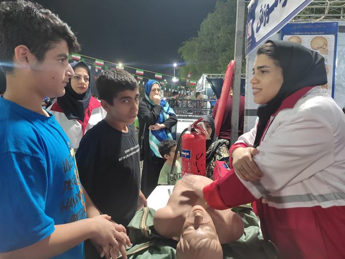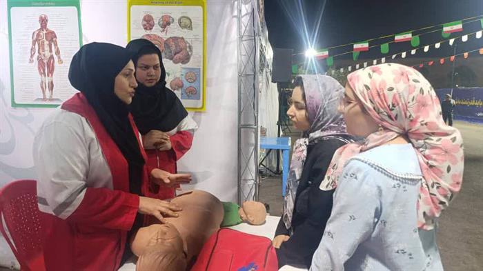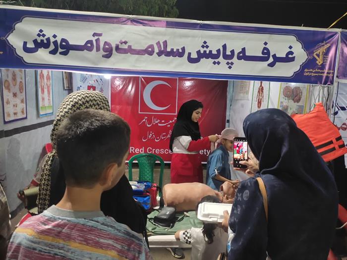 برپایی غرفه آموزش و پایش سلامت جمعیت هلالاحمر شهرستان دزفول در نمایشگاه هفته دفاع مقدس با هدف ترویج فرهنگ امداد و سلامت عمومی