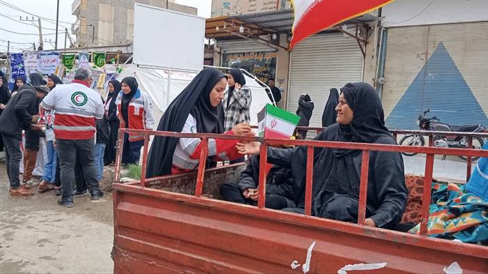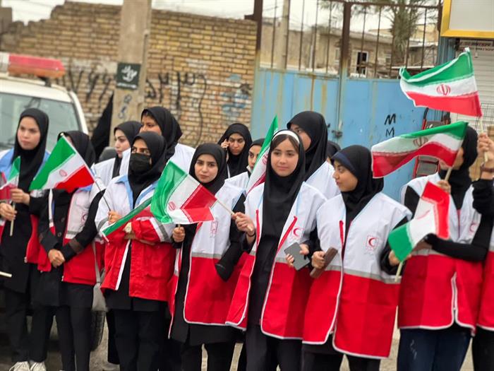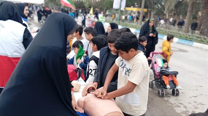 حضور پرشور کارکنان و اعضای جمعیت هلالاحمر شهرستان دشت آزادگان در راهپیمایی ۲۲ بهمن همراه با برپایی ایستگاه سلامت و غرفه دوستدار کودک